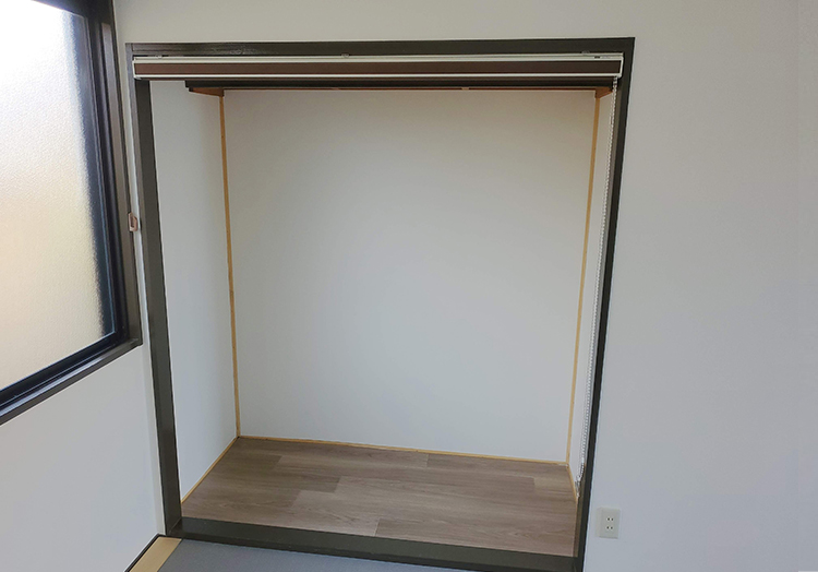 新しい収納方法!押し入れだったところにロールスクリーンを付けました!