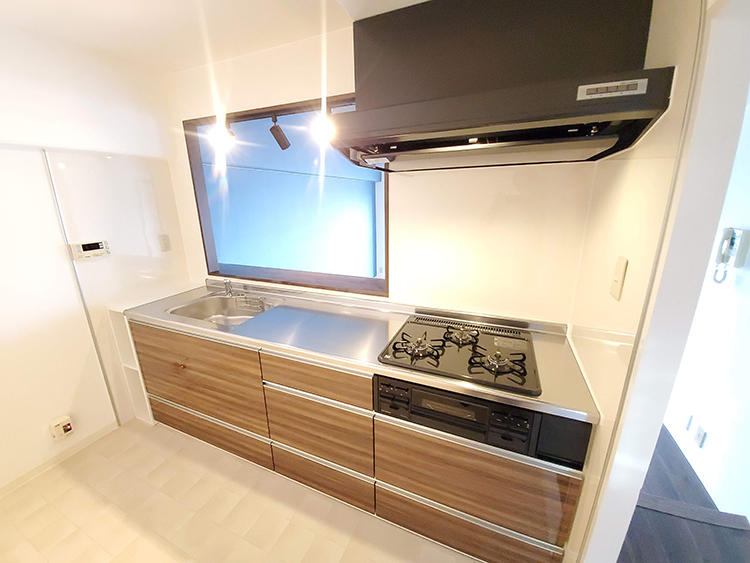 収納システムキッチン導入で対面キッチン越に家族との会話ができ、料理するだけでなく、憩いの場となることでしょう。