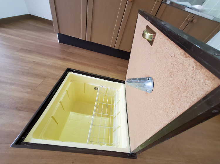 床下収納は、災害時の非常食や食料品のストック等保存する事が出来て場所を取らずに確保できます。
