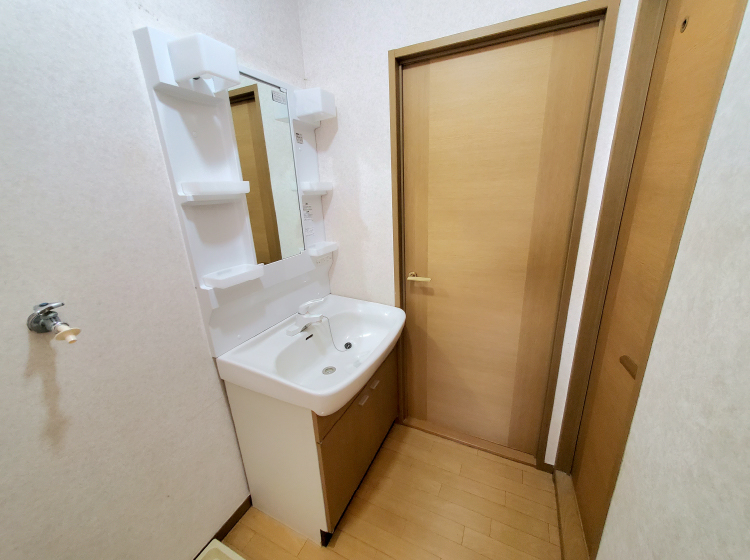 広めのボウルが使いやすい!毎日使う洗面台は細かな物が散乱しがちですが、オープン収納で整理整頓ができ、いつでも片付いた状態をキープできます。