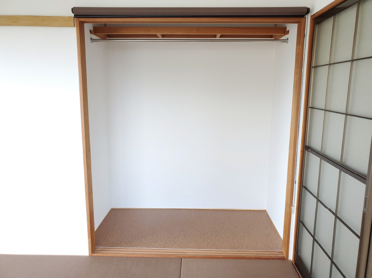 二つ目の和室押入れに、中棚を外してハンガーパイプを取り付け、使い勝手が良い収納スペースにリフォーム。襖をロールスクリーンに変える事で隅々まで見渡せ、スペースを有効に活用できます。