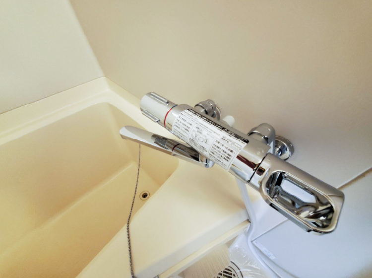 サーモスタット式の混合水栓に変えました。一定の温度を保って給湯する機能が備わっているので、急激な温度変化の心配はなさそうです。