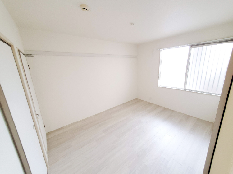 二つの和室を洋室にリノベーションしました。木目調のフローリングに変える事で部屋全体が明るくなり開放感のある印象になりました。