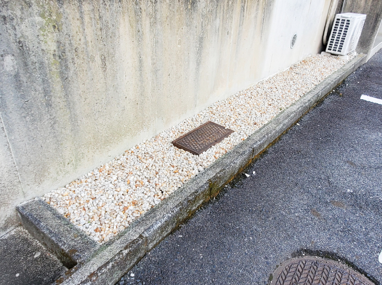 ツツジから砂利敷きに変更しました。手入れが簡単で雑草が生えにくく、さっぱりして見栄えもよくなりました。防犯対策にもなります。