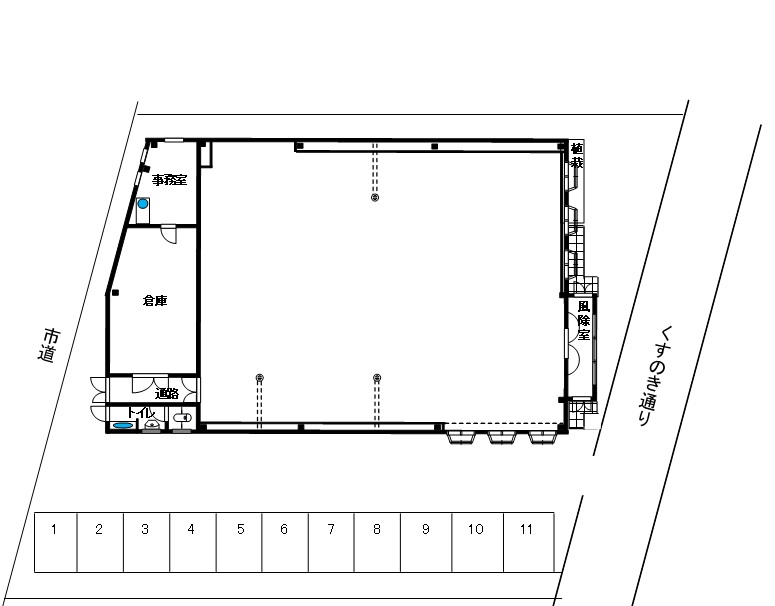 敷地内の駐車場11台分が入って、この賃料設定です。そしてくすのき通りという幹線道路に面しているこのテナント、面積も十分に確保されていますので物販や事務所等に適してます。お気軽にお問い合わせください。